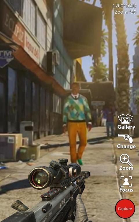 wawoo его удовольствие от использования камеры. Его композиционный фото приложение и имеет просто весело. Есть более чем 20 различных орудий снайпер и указать снайпера на его / ее голову и взять его / ее фото.