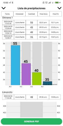 С помощью этого инструмента агрономос будет поднимать отчеты без необходимости, чтобы компьютер мог создавать в том же поле, чтобы сохранить документ, который будет сохранен в облаке и таким же образом, чтобы иметь возможность экспортировать в PDF, чтобы быть в состоянии отправить Чтобы ответить за свойства и фермеры, это также позволяет власти публиковать данные осадков из разных мест и иметь все дождливые данные в различных сельскохозяйственных районах.