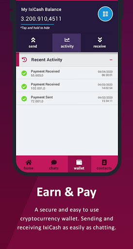 - Все сообщения и данные зашифрованы новейшими методами шифрования и сохраняются локально на вашем устройстве. Надежно пообщайтесь с друзьями и семьей. - Простой в использовании Cryptogurnence кошелек включен в Spixi. Отправьте и получите платежи так же легко, как вы отправляете сообщение другу. Просмотрите активность вашего кошелька и отправьте платежи в чате.