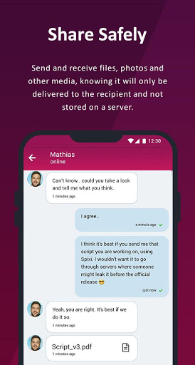 - децентрализованная архитектура за Spixi обеспечивает практически без службы простоя. Пока вы и ваш коллеги имеют подключение к Интернету, вы всегда сможете пообщаться и обмениваться данными. Нет центральных точек отказа.