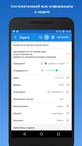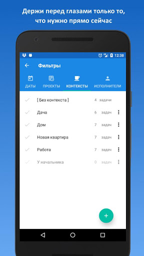 . Группируйте и фильтруйте задачи по проектам, контекстам и исполнителям. Вам не нужно помнить список вопросов, которые надо обсудить с партнером или какие дела вы планировали сделать дома. В нужный момент они окажутся у вас перед глазами.