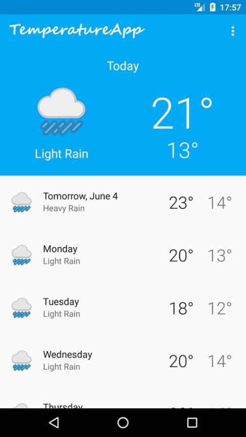 TemperatureApp предоставляет информацию, как температура, погодные условия, влажность, ветер, давление и многое другое. При переключении местоположения можно получить последнюю информацию прогнозной любого города или места.