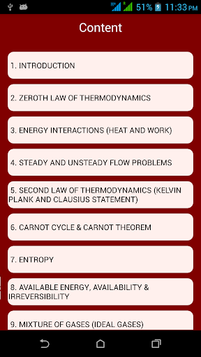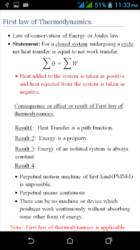 Thermodynamics notes app has been developed based on need of students before exams and for revision purpose.This app covers all the topics of basic Thermodynamics. Important points to be remembered during any exam and relevant formulas to solve numericals are mentioned in this app. Many points which are important for exam point of view are underlined or highlighted.