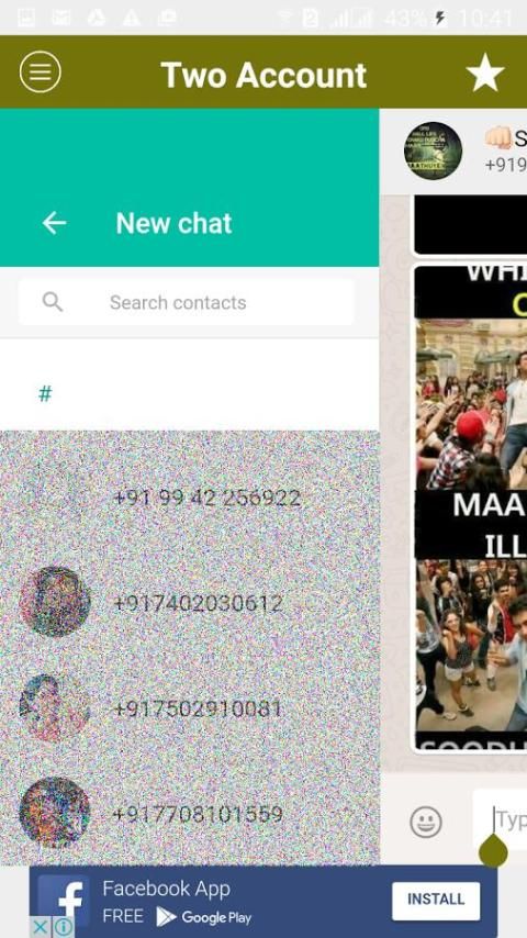 Вы тяжелая из Whatsapp? Если вы любите обмен сообщения и у вас есть более одного счета, или просто хотите иметь варианты Double WhatsApp, попробуйте это приложение. Это не даст вам тонны несколько вариантов, независимо от того, каковы ваши потребности, связанные с Facebook, принадлежащей платформе. Это компаньон приложение создано для Whatsapp! Это позволяет иметь двойное WhatsApp или двойной WhatsApp WhatsApp 2 т.е. в 1 телефон.