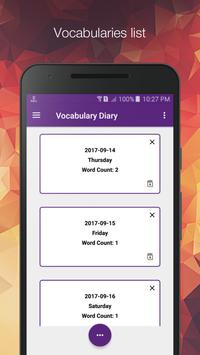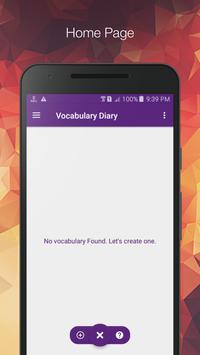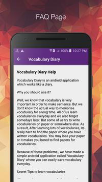Vocabulary diary allows you to learn english vocabulary and make a list of vocabulary in your phone. By saving everyday vocabulary you can make a simple vocabulary builder in your phone. You can save any types of vocabulary like IELTS vocabulary, TOFEL vocabulary and general english vocabulary.