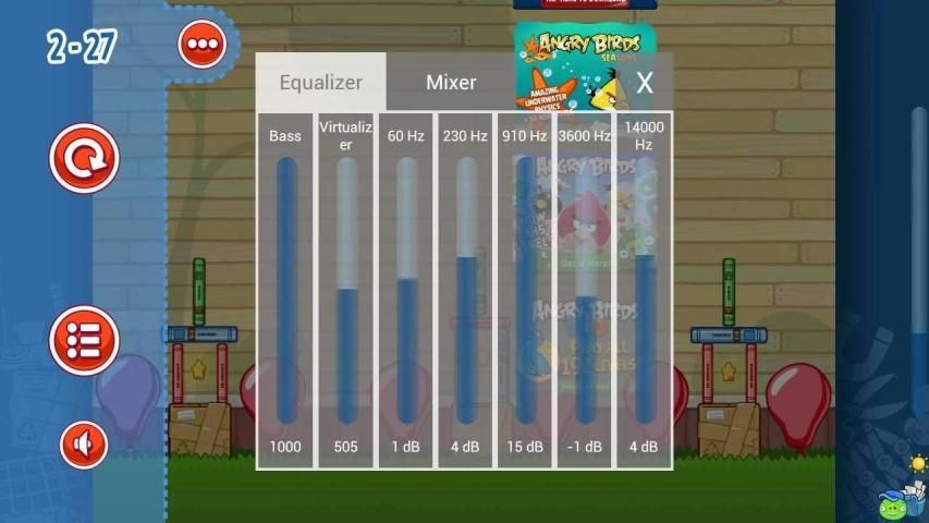 Возможности: регулировка громкости звука во всех каналах андроид устройства, эквалайзер (вызывается либо нажатием на ползунок двумя пальцами, либо долгим нажатием) для регулировки тембра звука, микшер для поканальной регулировки громкости. Есть усилитель басов и расширитель стереобазы.