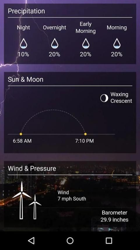 Более температур, получить "чувствует, как" погода, влажность, точка росы, восход, закат, скорость ветра, УФ-индекс, видимости и барометрического давления. Точный прогноз погоды!
