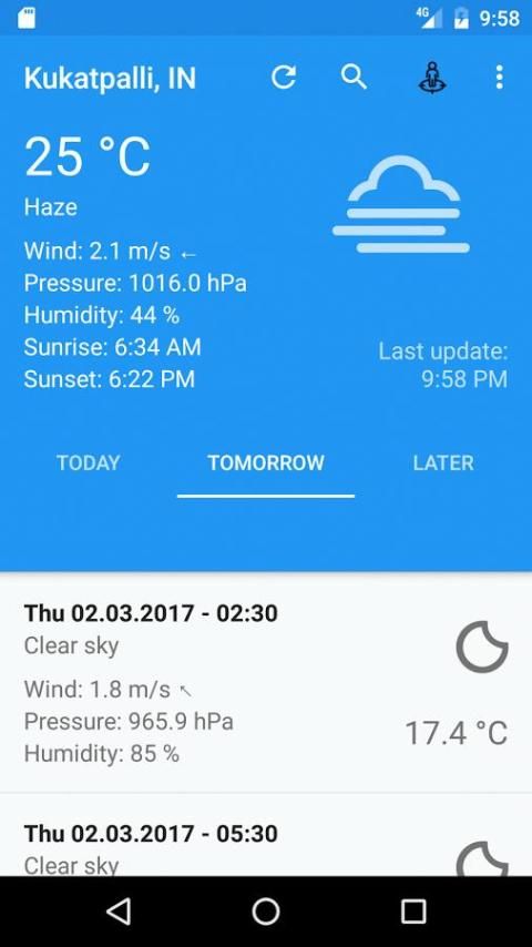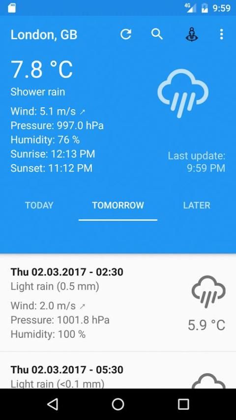 * Прогноз погоды Приложение поддерживает гео-позиционирование, получение последние погодные условия для вашего текущего местоположения.