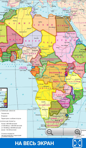 Карты работают в онлайн режиме, поэтому вам нужен доступ в Интернет. Оффлайн можно посмотреть одну карту мира, ее вы найдете в меню приложения.