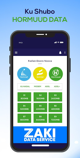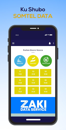 Zaki Data waa App kuu fududeynaa inaad si fudud ugu shubato xirmooyinka internet ka ee Somnet/Somtel bixiso , adoon wicin qof oo ii soo tuurna oran ayaad si sahlan ku heleysaa xirmo internet ah.