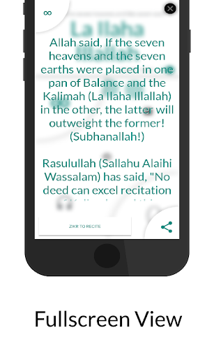 Можно войти в полноэкранный режим для Zikr, например, для запоминания Zikr, если он длиннее.