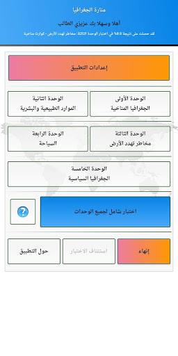 География Маяк обслуживает студентов средней школы Литературный участок палестинской платформы. Br> Приложение дает отзывы для каждого вопроса, а также ответы на вопросы по желанию студента и дает обратную связь после окончания каждого теста на урок.
