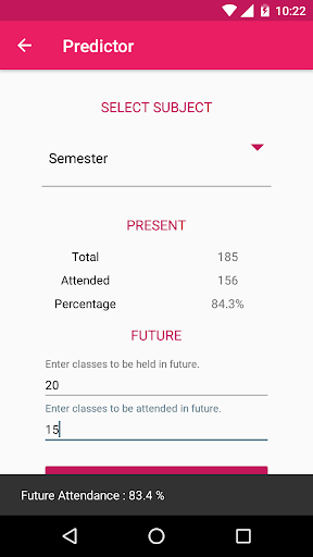 -> Для будущего предиктора посещаемости выберите тему или семестр, затем введите классы, которые будут проведены в будущем, а классы, которые вы собираетесь присутствовать в будущем