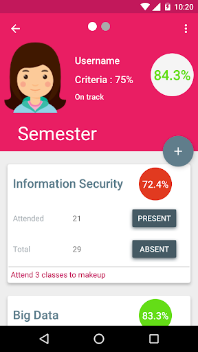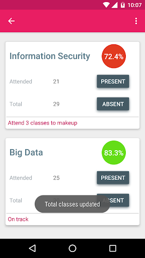 -> для каждого предмета, когда проводится класс, если вы приняли участие в классе, нажмите «Настоящий», - нажмите кнопку «Obsent»