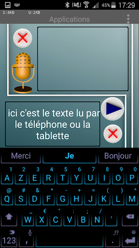 Это приложение преобразует текст, который написанный глухой человек, голос (использует голосовой синтез устройства)