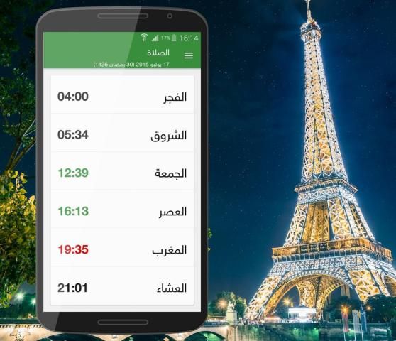 التطبيق يعطيك أوقات الصلاة في كل المدن الفرنسية أوقات الصلاة مع الأذان في باريس