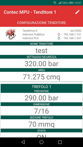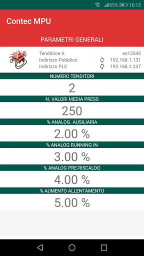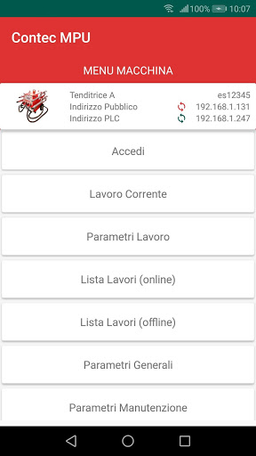 Приложение также позволяет управлять рабочими параметрами машины через привилегии.