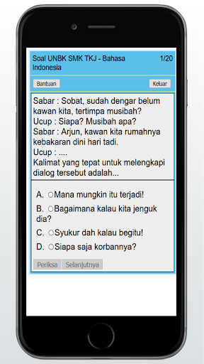 aplikasi ini berisi kumpulan Soal Soal UNBK TKJ 2020 dari pelajaran MTK Bahasa Indonesia Bahasa Inggris Kejuruan TKJ