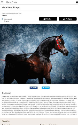 Experience Qatar’s ground-breaking new equestrian venue. View beautiful horse imagery and videos. Browse and search AL SHAQAB’s champion horses to view titles won, bios, pedigrees and progeny. Explore AL SHAQAB using a special GPS enabled map, including interactive locations and directions. Catch up on the latest AL SHAQAB news and stay up to date with the upcoming AL SHAQAB events.