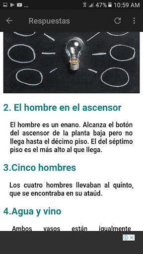 En esta app encontraras acertijos que pondrán a prueba tu creatividad y tu habilidad de análisis.. Que te diviertas