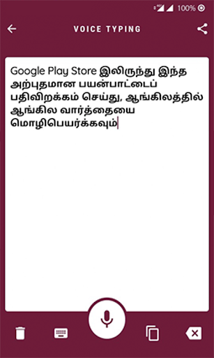 7) Функция Tamil Voice Typing, которая позволяет создавать большой текст или абзац любых слов, и улучшить вашу прону, пока горит.