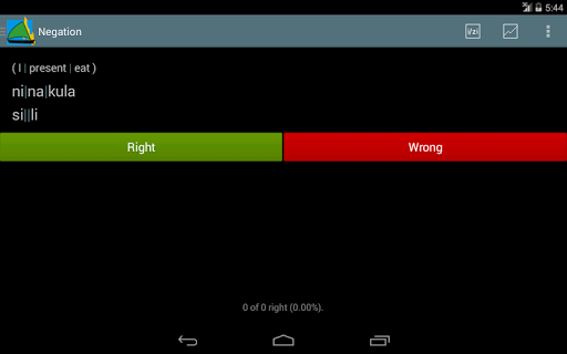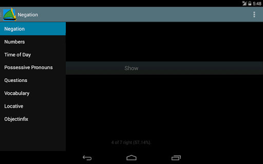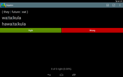 is as follows: the app poses a task, say in the area of negation, by giving the positive case, e.g.