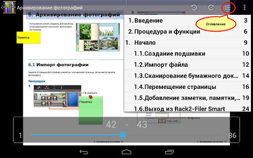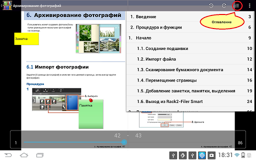 - Импортирование данных подшивки выполняется с помощью Rack2-Filer Smart на компьютере, просматривать эти данные можно на мобильное устройство.