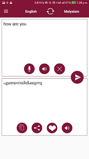 * В обоих режимах, малаялам на английский переводчик или английский на малаялам. Дружественный дизайн материала, используемый для легкого использования