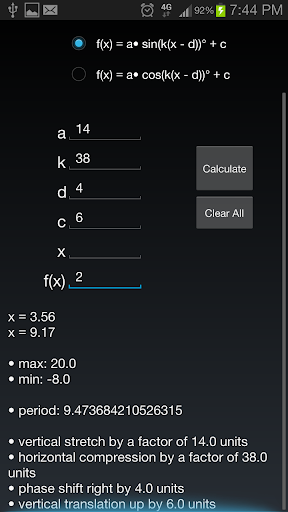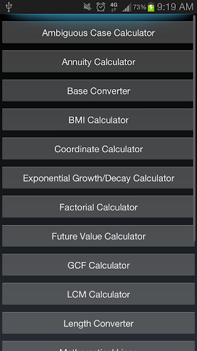 Has 35 calculators that include (details at http://mikeyaworski.com/calculator ):
