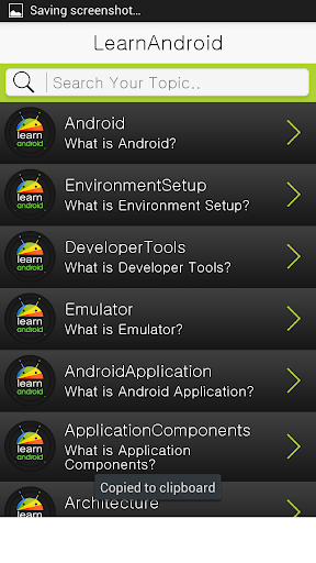 Учитесь приложение для Android поможет вам понять основные концепции Android.Он содержит все важные темы, которые вам нужны, прежде чем начать свое развитие.