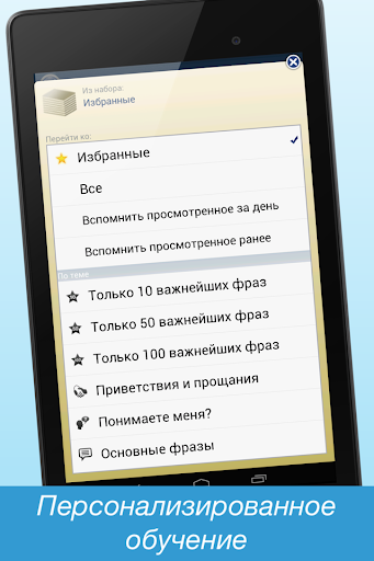В «Избранное» можно добавить любую карточку. Это позволяет составить пользовательскую колоду карточек для изучения нужных слов в течение дня. Включите режим «Повтор» и повторите все, что вы выучили за день, увеличив тем самым объем отложившегося в памяти материала.