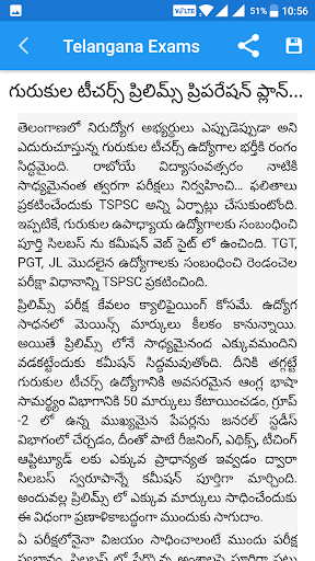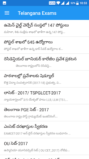 Telangana Exams app is useful for EDUCATION, JOBS & EMPLOYMENT. We provide information of Academic guidance from 10 th to PG and other Technical, Professional courses. This app is useful to provide Jobs notifications of Civil Services to State Public Service Commissions, Teachers, Police recruitments, RRB, Banks, Defense and other Central Govt services. Through this app we provide information on Self-employment schemes which is sponsored by the State & Central government. We publish daily updates on current affairs and GK. It contains latest online study material also.