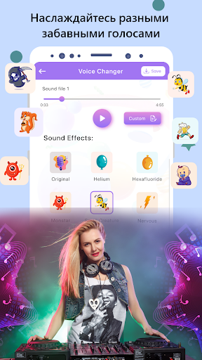 Создавайте лучшие комедийные голосовые заметки с помощью этого уникального приложения для изменения голоса, троллите своих друзей с помощью забавных звуковых эффектов. Просто записывайте голос в любое время, и это бесплатное приложение для изменения голоса предоставит вам действительно сумасшедший и радостный голосовой мод.