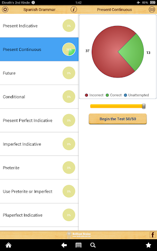 You can study the grammar rules by topic. All questions are sorted by topic. It also tells you the areas that each topic covers. Choose your own timer setting and number of questions you would like in each test. Special algorithm randomizes questions every time you take a test.