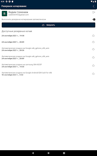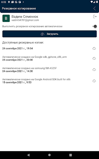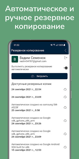 Автоматическое резервное копирование. Позволит восстановить Ваши данные на другом устройстве.