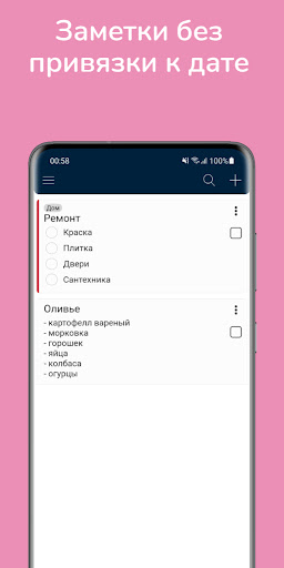 - заметки, не привязанные к дате
