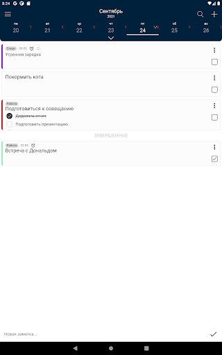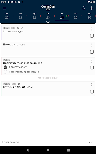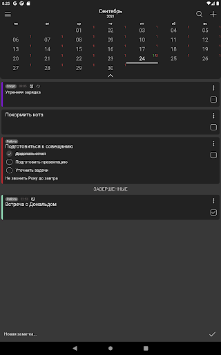 По завершении задачи можно отметить ее как выполненную - при этом она переместится в список завершенных и обновляться счетчики задач на календаре.