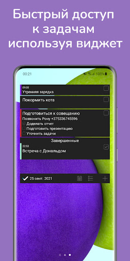 Виджет - удобный способ всегда видеть задачи и быстро управлять ими.