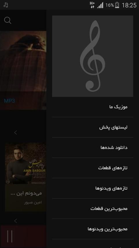 - صفحه «موسیقی من» شامل ترانه ها و لیست های پخش مخصوص به کاربر