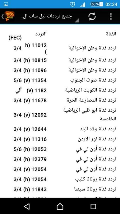 Публикуйте ваш это приложение обновляется почти каждый день в прошлом и последние частоты Нилсат старым и новые и постоянно обновляются, где мы постоянно следуем к последнему Нилсат и новые каналы добавили обновление, каналы зашифрованы и в незашифрованном виде.