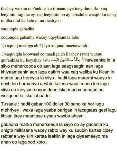 sidaasi darteed Ayaan uugu Talo galney в ау dadka aqristaan xaquuqaha уу qofba qofka кале ку leeyahay си лу badbaadiyo qoysaskeena, waana muxaadaro Лага qorey Ших Mustafa xaaji ismaaciil haaruun.
