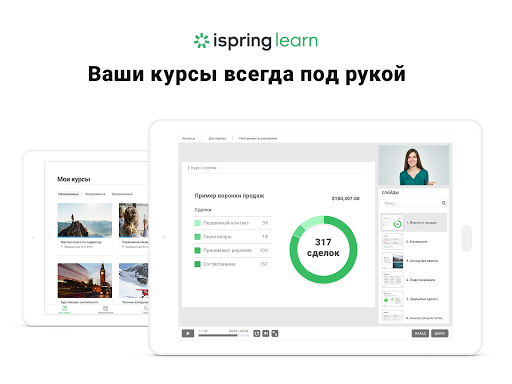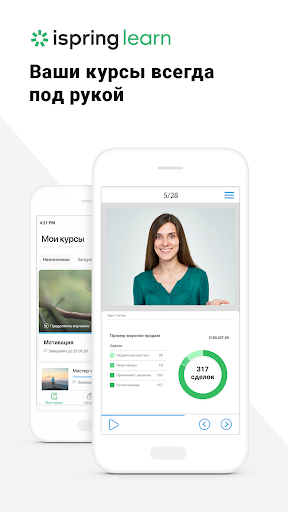 Это бесплатное мобильное приложение для системы дистанционного обучения iSpring Learn. Проходите курсы и тесты, смотрите вебинары, общайтесь с коллегами и бизнес-тренерами — всё в одном приложении.