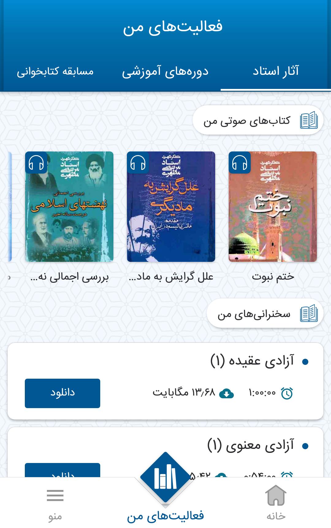 دسترسی به فایل صوتی (سخنرانی استاد یا کتاب صوتی) مرتبط با هر کتاب