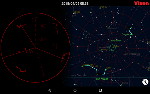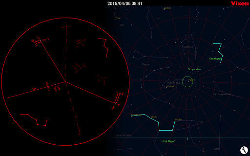 Vixen’s polar alignment scopes are designed to align the equatorial mount using Polaris and two reference stars named Delta UMi and 51 Cep to increase accuracy of the polar alignment (in the northern hemisphere). If the above two reference stars are added to your polar alignment, you will increase the setting accuracy and tracking precision.