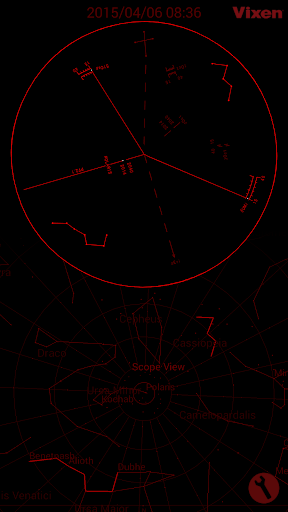 An image of the field of view seen though the polar alignment scope at the time of observing is indicated on the screen of your smartphone or tablet.