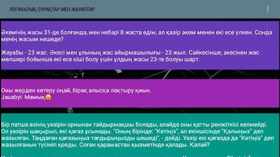 Logikalyқ sұraқtar zhane oyyndar - Logikalyқ sұraқtar balalarғa arnalғan Sauat asu ushin keremet mumkyndykter, zhane Logikalyқ oyyndar Logikalyқ sұraқtar Kazaksha Oiyn Kazakh Russian Oyyndar Logikalyk suraktar Zhұmbaқtar Balarga arnalgan Logikalyk suraktar Zhumbak tyzbektery syzder ushyn.