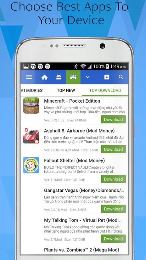 Лучший рынок Appvn включает в себя интегрированный магазин, который позволяет перемещаться по различным категориям, чтобы помочь вам легко найти, легко и быстро.