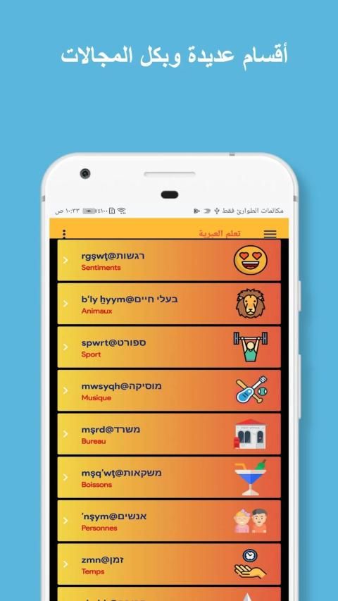 تعلم اللغة العبرية تطبيق لاختبار و لتعلم اللغة العبرية في أقصر وقت بالتمكن من أهم الكلمات العبرية المستعملة في الحياة اليومية