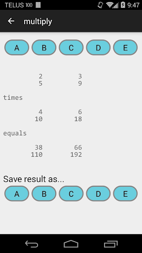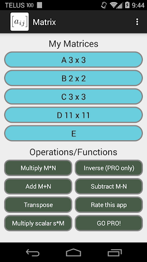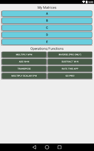 With the paid version of this app, The Matrix App PRO, also compute the inverse, eigenvalues (real and complex), eigenvectors, and find LU, Cholesky, QR and SVD decompositions.