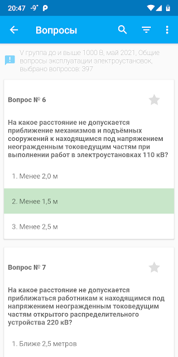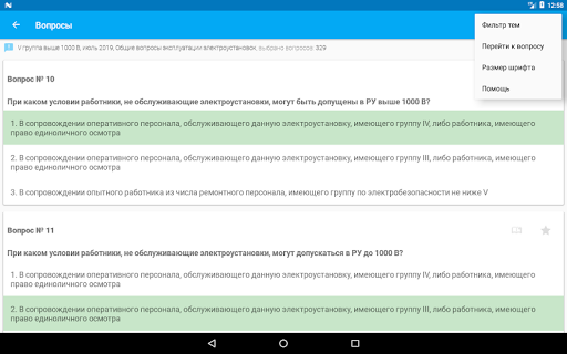 - режим "Избранные вопросы", который позволяет создать список избранных вопросов и затем пройти тест по сформированному списку